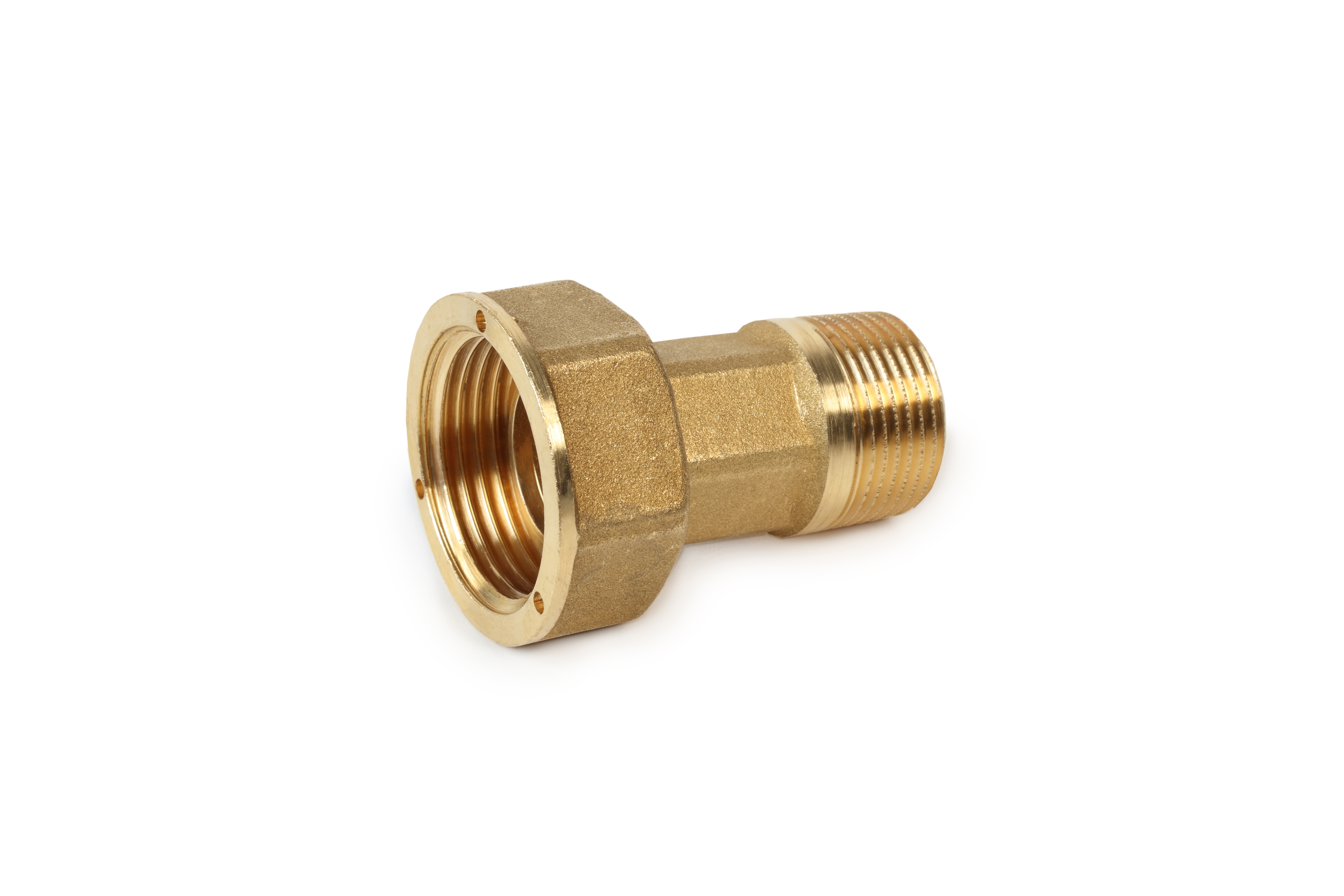 Bocchettone in ottone cromato o non cromato, attacco maschio-sede piana, completo di calotta e guarnizione.