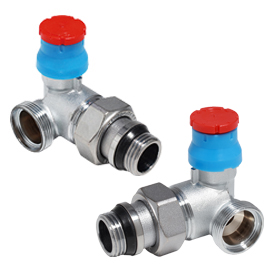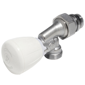 Valvola micrometrica termostatizzabile, a squadra, in ottone, cromata, con attacco tubo ferro.
